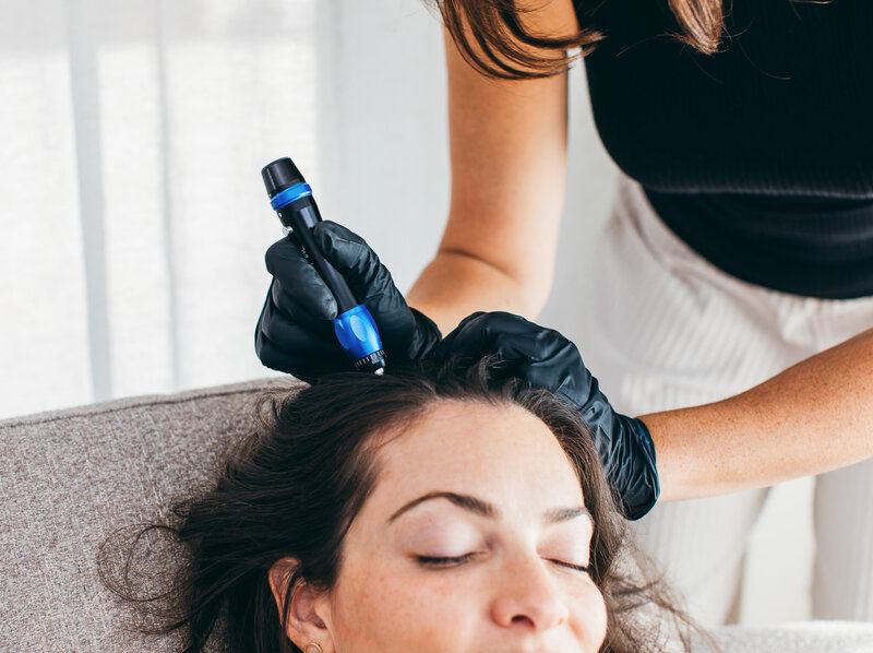 A non-invasive skincare treatment that combines exfoliation, cleansing, extraction, and hydration to improve skin health and appearance. It utilizes a specialized device with a tip that sprays a solution onto the skin while simultaneously vacuuming away dead skin cells, debris, and impurities. Clients love the improvement in skin tone, texture, and hydration.